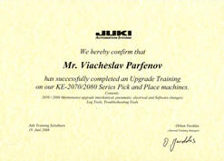 Также во время обучения сервисным инженерам ООО «Совтест АТЕ» представилась возможность увидеть в работе новейшую разработку фирмы JUKI – высокопроизводительный автомат для установки компонентов поверхностного монтажа FX-3. Производительность автомата может достигать 60 000 тыс. компонентов в час (в соответствии со стандартом IPC9850) благодаря использованию 4 независимых балок, оснащённых 6 наконечниками каждая, на двух установочных станциях (сборка 2-х плат одновременно).