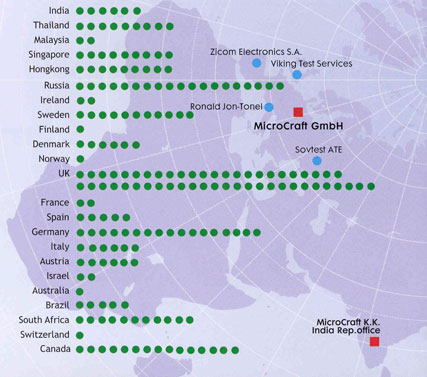 На днях офис ООО «Совтест АТЕ» в Курске посетил президент фирмы MicroCraft господин Yorio Hidehira. Он поблагодарил руководство и сотрудников «Совтест АТЕ» за отличную работу и отметил, что компания отвечает всем требованиям, предъявляемым фирмой MicroCraft к своим дистрибьюторам, а по некоторым показателям даже опережает своих коллег из других стран. Так, например, по количеству продаж среди европейских дистрибьюторов ООО «Совтест АТЕ» занимает второе место после Великобритании.