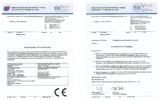 Благодаря появлению собственного производства в Китайской Народной Республике, у компании Votsch появилась возможность предложить Вам современное качественное оборудование – самые востребованные температурные и климатические камеры с объёмом тестового пространства 190, 335, 600, 990 и 1540 литров по более низкой цене (на 30% дешевле камер Votsch, произведённых в Германии). Необходимо особо подчеркнуть, что снижение цены не влияет на качество оборудования, которое изготовлено по немецким технологиям, с немецким качеством в соответствии с европейскими стандартами и проходит тщательную проверку качества, а также калибровку. Китайские предприятия, выпускающие комплектующие для автомобилей марки Volkswagen, оснащены данной серией камер. Высокое качество поставляемого оборудования подтверждено соответствующими сертификатами.