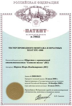 Так в декабре прошлого года были получены государственные патенты на две разработки «Совтест АТЕ», которые уже давно были протестированы заказчиками компании, и активно используются ими на производстве. 10 декабря 2008 года были получены официальные документы, выданные Федеральной службой по интеллектуальной собственности, патентам и товарным знакам Роспатент, и удостоверяющие право и авторство на полезную модель, а также гарантирующие юридическую защиту разработок: