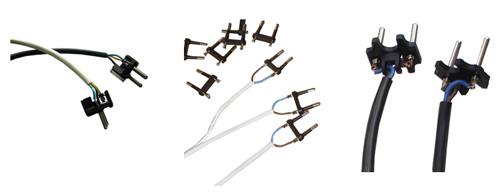Возможна адаптация машины для опрессовки любого из существующих типов арматуры сетевой вилки (предназначенных для опрессовки) по требованию Заказчика.