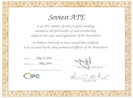 Компания «Совтест АТЕ» уже на протяжении 6 лет является полноправным членом Международной Ассоциации IPC, объединяющей производителей электротехнических материалов, печатных плат, электроники и оборудования для электроники и т. д.