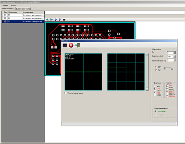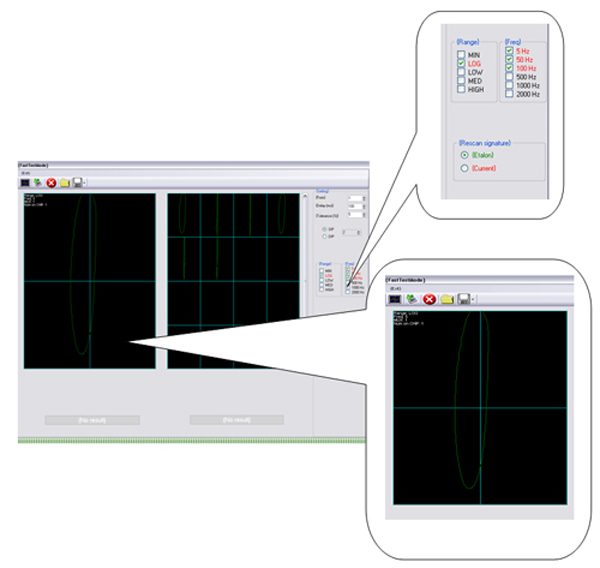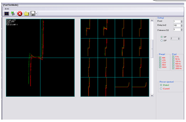 - Автоматическое выполнение программы с использованием ножной педали для снятия сигнатур – ещё один полезный инструмент, оставляющий свободными руки оператора для работы со щупами и позволяющий непрерывно следить за процессом тестирования;