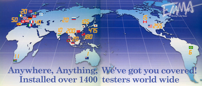 По последним оценкам, компания MicroCraft (Япония), мировой лидер в технологии тестирования подвижными пробниками, установила уже более 1400 тестеров по всему миру. Ниже на карте представлено распределение продаж по странам. Как видно из диаграммы, в России продано уже 20 машин, причем все поставки были осуществлены компанией «Совтест АТЕ», которая с 2001 года является официальным дистрибьютором фирмы MicroCraft в России и странах СНГ. Дистрибьютерская сеть расположена ниже: