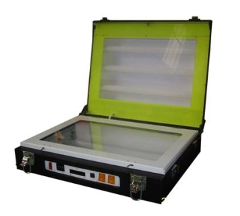 - Компактная и недорогая установка позволяет экспонировать фоторезист, нанесённый с двух сторон заготовки.