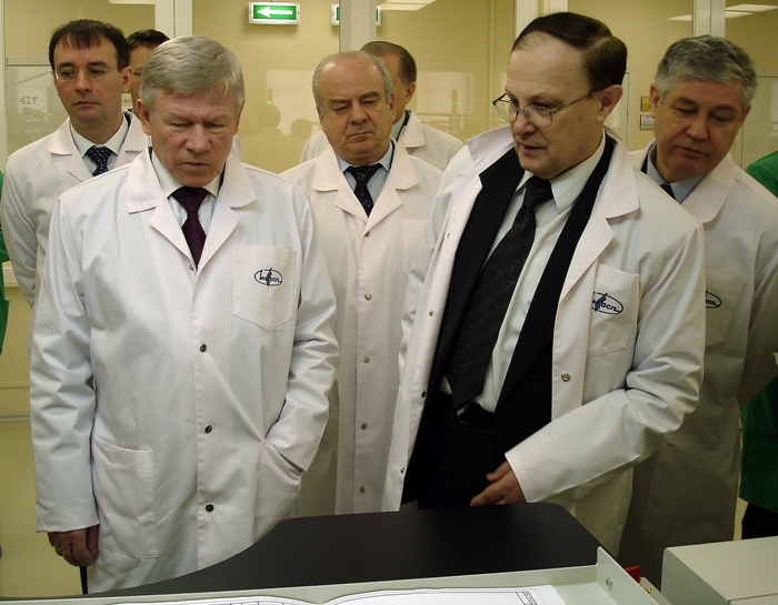 На предприятии Роскосмоса внедряется автоматическая линия по монтажу элементной базы. На пуско-наладочных работах побывал руководитель отрасли А.Н. Перминов