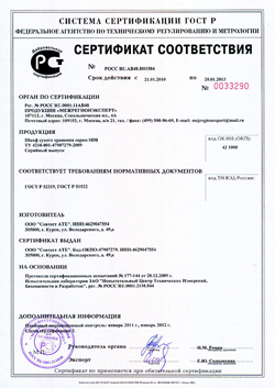 Сертификат выдан независимой лабораторией по результатам успешного прохождения испытаний, подтверждая стабильность технологического процесса действующего производства и гарантируя высокое качество выпускаемой продукции на основании действующей конструкторской, технологической и нормативной документации, а также утвержденных методов приемки готовой продукции, предусматривающих 100% контроль качества выпускаемых шкафов сухого хранения серии SDB.